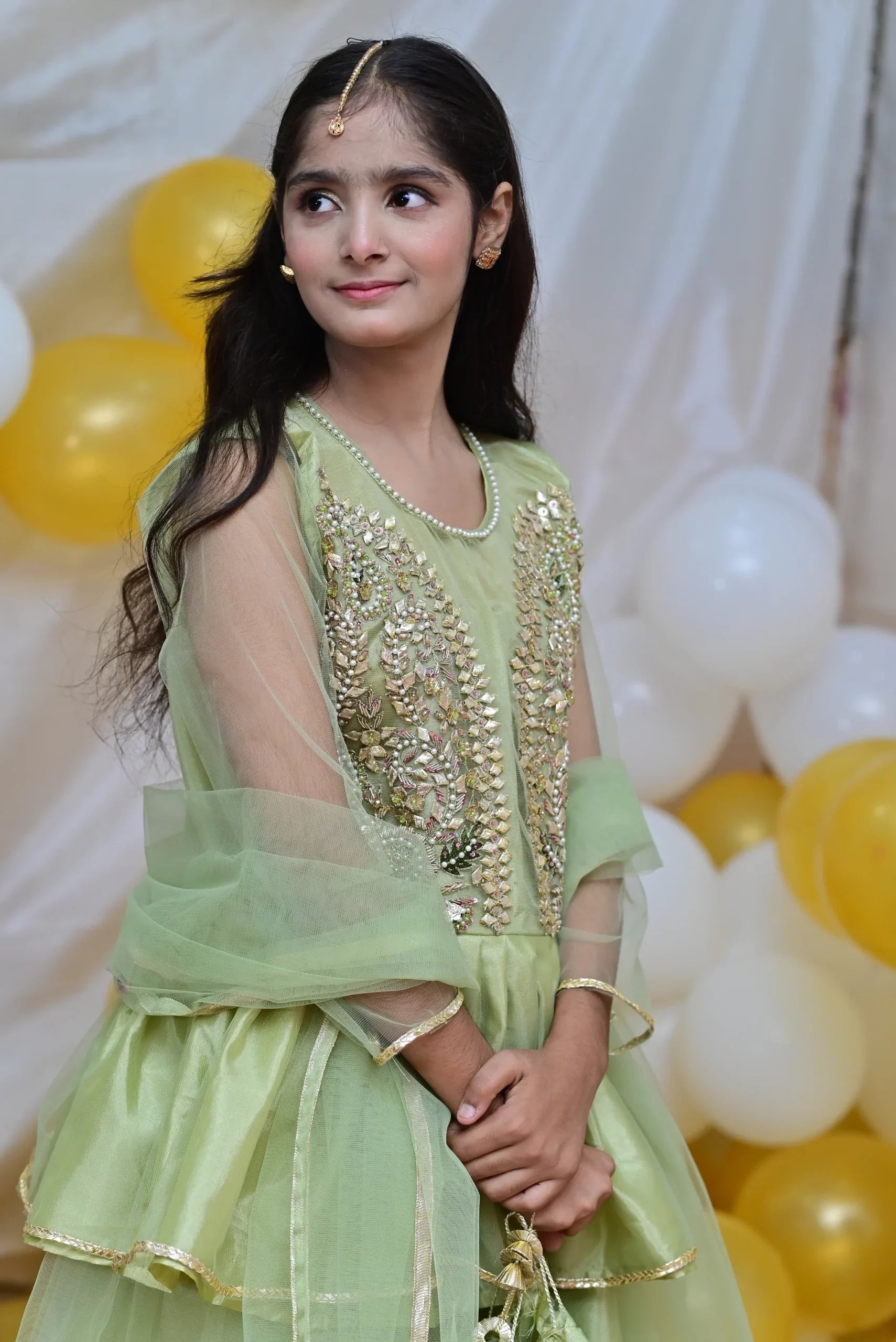 Gotta Kinari | Handwork Lehenga With Frock | Girls Party Wear Dress